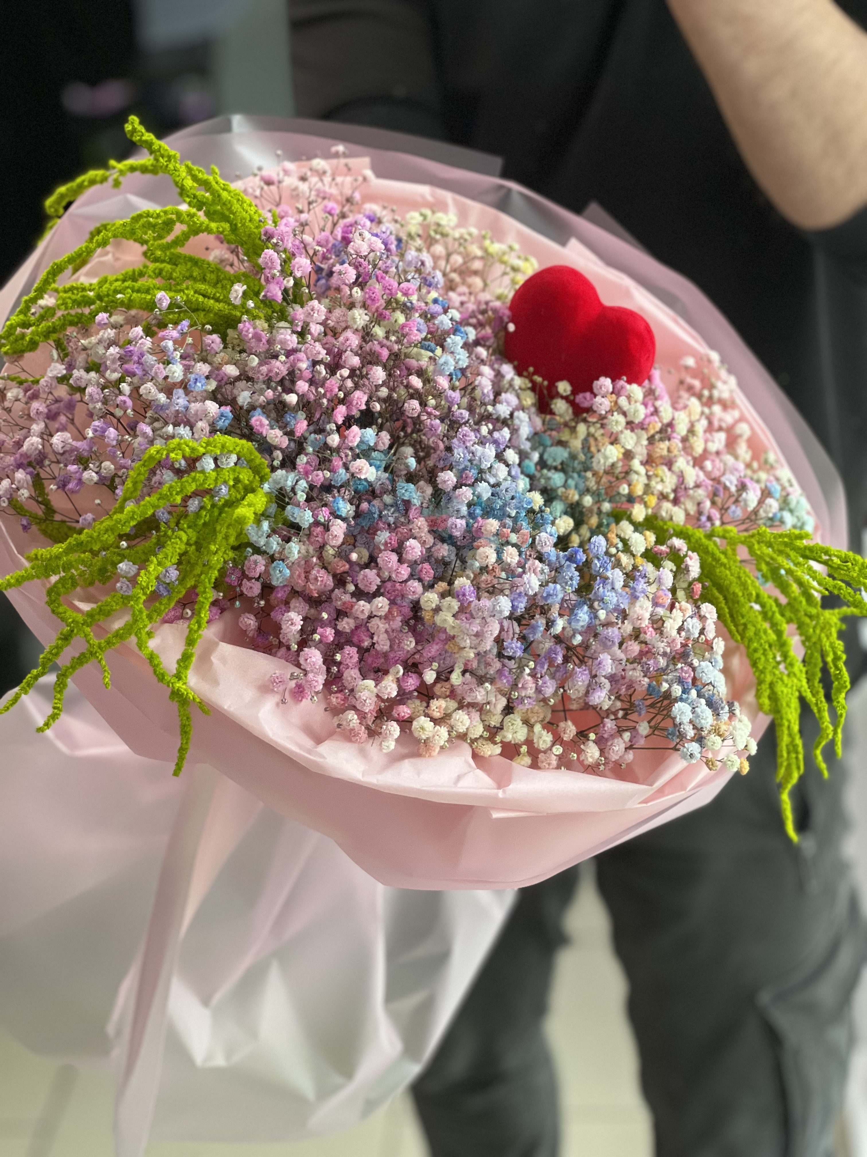ГлавнаяBuchete clasice Hortensie, Anthurium și Gypsophila