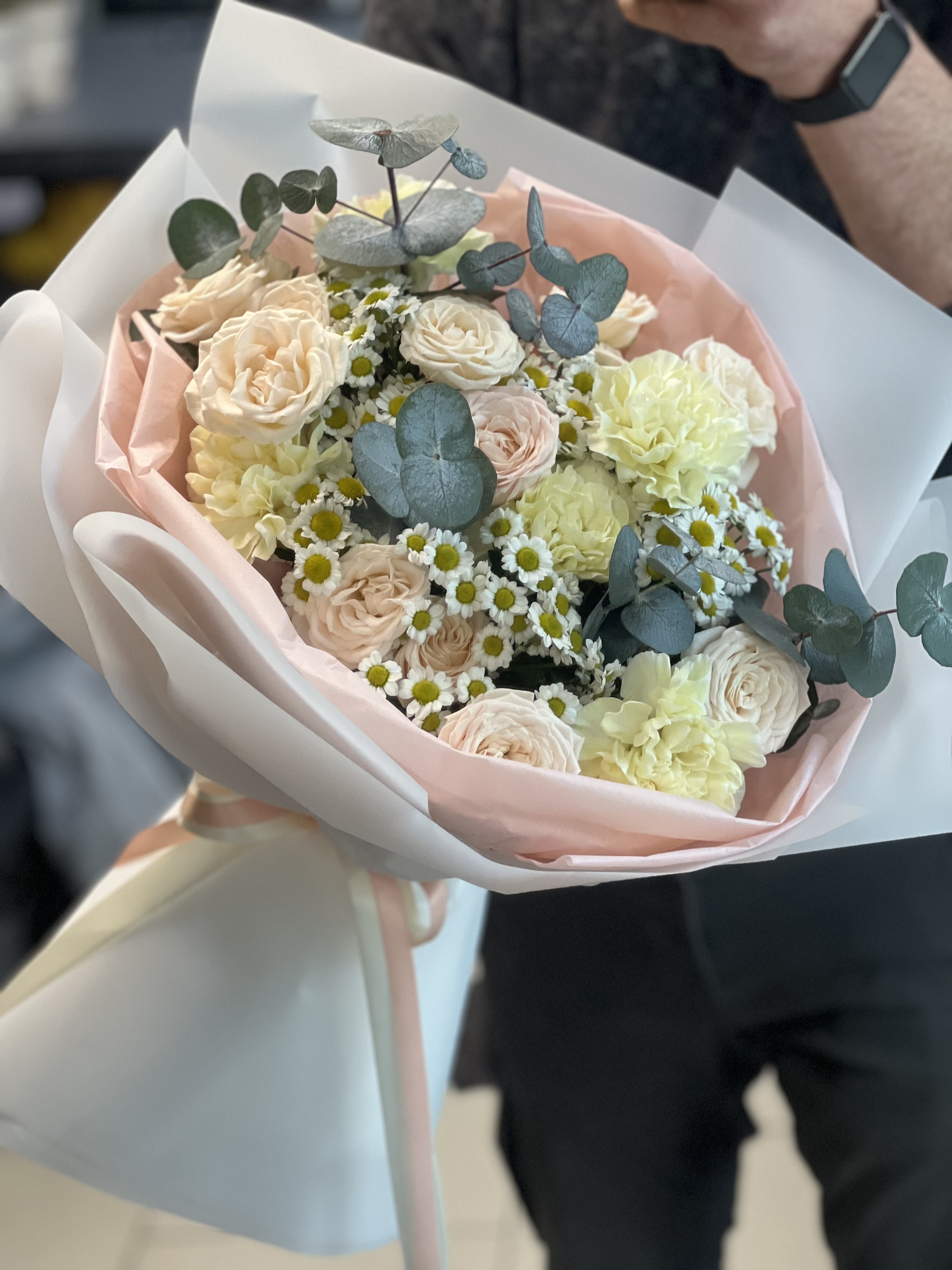 Buchet trandafiri cu eucalipt #302